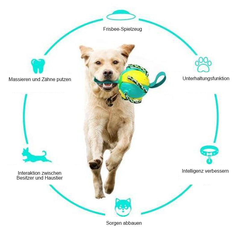 - Interaktyvus kamuoliukas puikiai tinka įvairaus amžiaus šunims žaisti. Šuniukai gali savarankiškai žaisti su kamuoliu arba šeimininkai gali kartu žaisti, mesdami kamuoliuką į tolį. Kai šuo sukanda kamuolį, jis pasidaro plokščias, o kai padeda jį ant žemės, kamuolys grįžta į savo formą ir pašoksta į viršų!