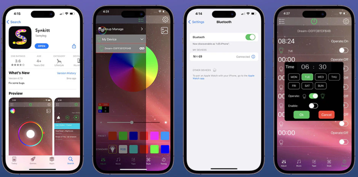 Lempa naudoja Wi-Fi (2.4G) + BLE modulį, todėl ją lengva prijungti prie įvairių įrenginių ir valdyti per programėlę.