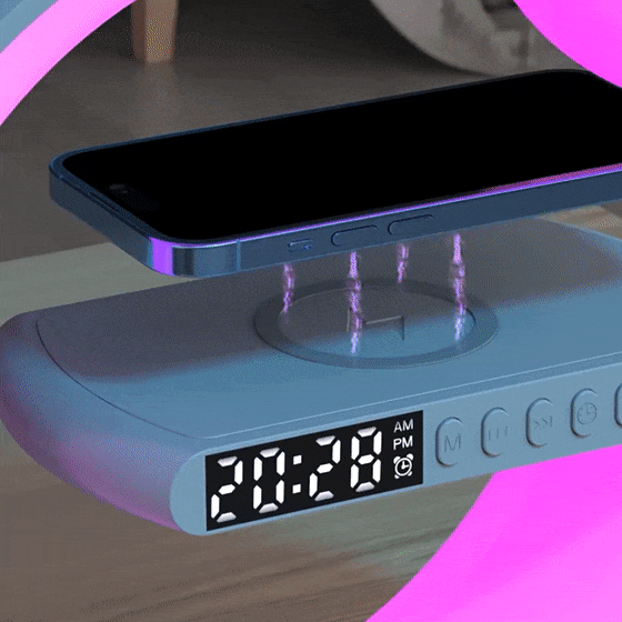 Šviestuvas turi integruotą 15W belaidžio įkrovimo zoną - Jums tereikia ant jos padėti telefoną ir jis pradės krautis automatiškai.