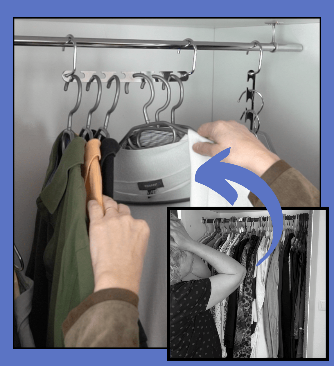 Ši išmani pakabinimo sistema leidžia pakabinti iki 12 drabužių vienoje vietoje. Puikus būdas sutaupyti vietos drabužiams ir pagerinti organizaciją.