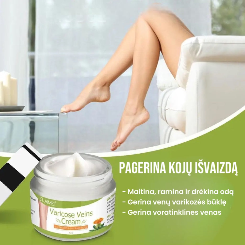 Vėl būkite pasitikintys savo oda! Kremas minkština ir lygina odą vietose su venų išsiplėtimu, leisdama jaustis pasitikinčiais net trumpais šortais, sijonais ir suknelėmis. Tinka tiems, kurie kenčia nuo venų uždegimo ir varikozės. Natūralūs ingredientai, be kančių keliančios operacijos alternatyva.