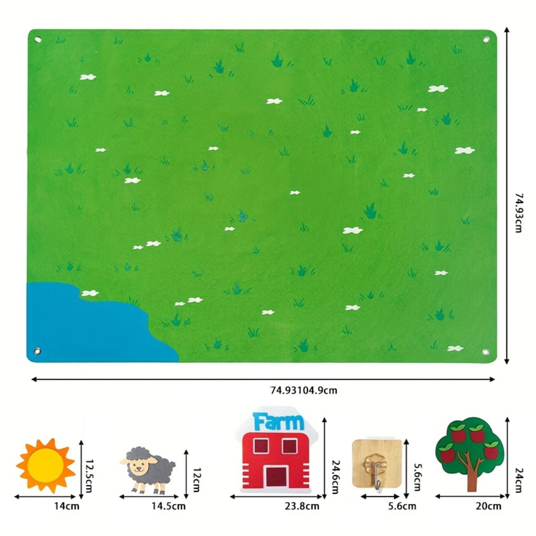 2. Į žaidimo komplektą įeina įvairios figūrėlės, kurias galima kabinti ant kilimėlyje numatytų vietų.