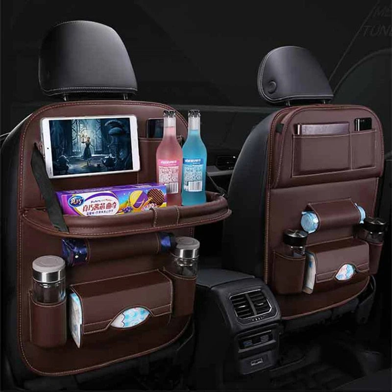 Šis dėklas yra pagamintas iš aukštos kokybės odos, tad ne tik prideda elegancijos Jūsų automobilio interjerui, bet ir suteikia praktiškumą dėl savo daugybės kišenių dizaino ir sulankstomo padėklo, kuris tarnauja kaip patogus stalas kelionės metu.