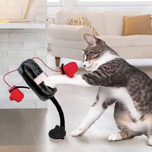 - Bokso kriaušė žadina natūralius kačių medžioklinius instinktus! Kriaušė yra pritvirtinama prie lygaus grindų pagrindo. Prie kriaušės yra pritvirtintos bokso pirštinės su barškučiais, kurios ypatingai sudomina kates. Pirštinių viduje yra įdėta natūrali džiovinta katžolė, kuri suteikia katėms daugiau energijos ir žvalumo.