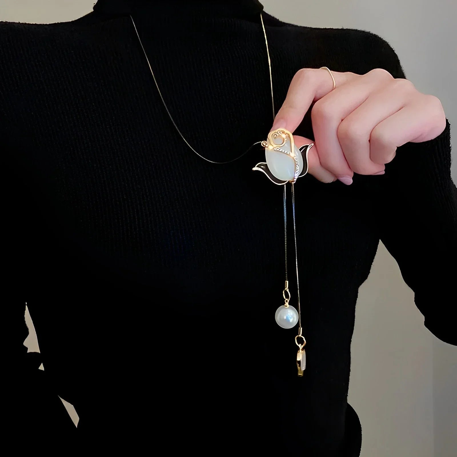 - Reguliuojama grandinėlė leidžia pakabuką pakelti aukščiau arba nuleisti žemiau. Tai puiki stiliaus detalė, kuri pagyvina drabužį bei suteikia nepaprastos prabangos!