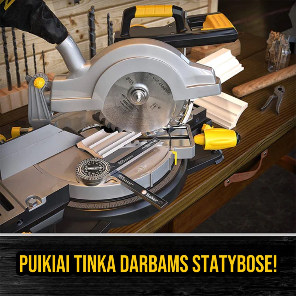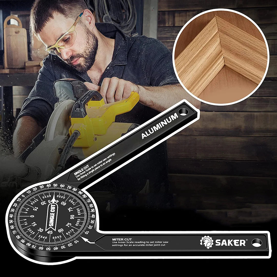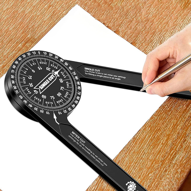Lengvai įskaitomos tikslios lazeriu išgraviruotos instrukcijos. matlankiu galima tiesiogiai nuskaityti kampą. Aliuminis matlankis pagamintas iš anoduoto aliuminio plieno. apdirbto CNC.