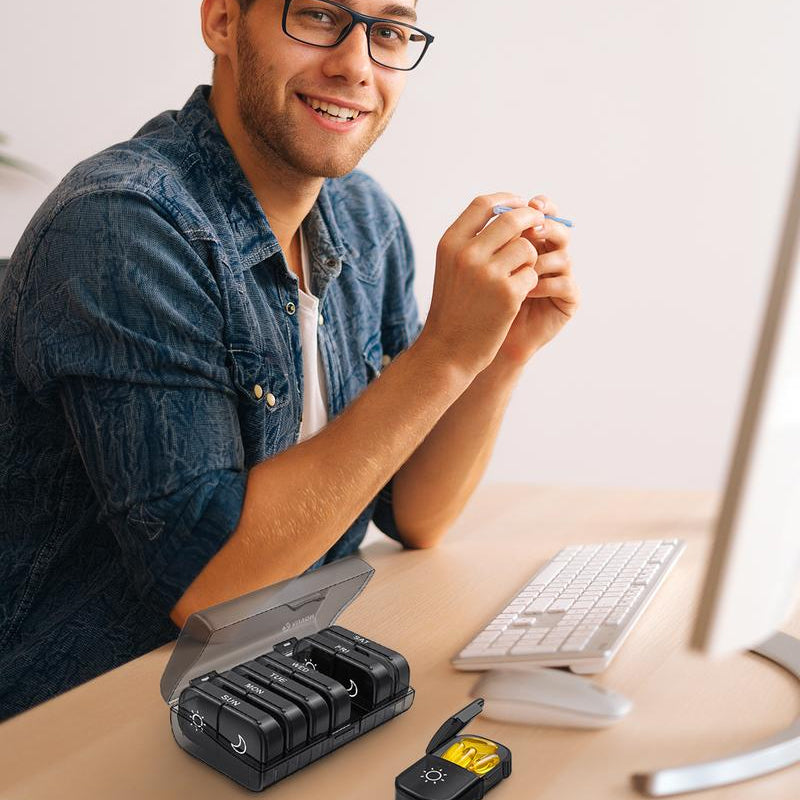 ✔ Kompaktiškas ir diskretiškas – atskiros dienų dėžutės lengvai telpa į kišenę ar rankinę, o elegantiškas dėklas užtikrina privatumą kelionėse.