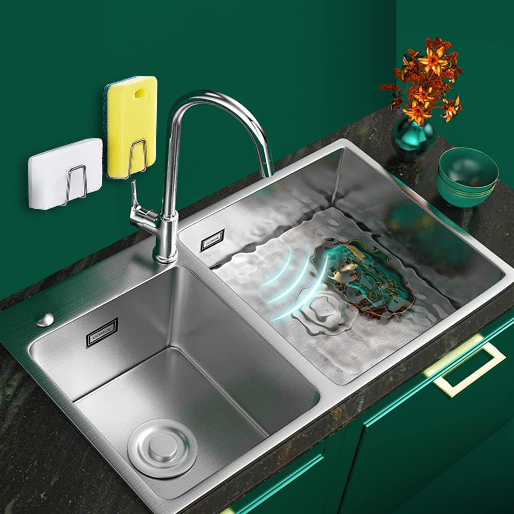 Kempinėlę ar šluostę laikykite ten, kur jumis naudojatės. Atviras laikiklio dizainas leidžia nutekėti vandeniui, kempinės greitai džiūna ir išlieka švarios, o aplink kriauklę nebelieka netvarkos.