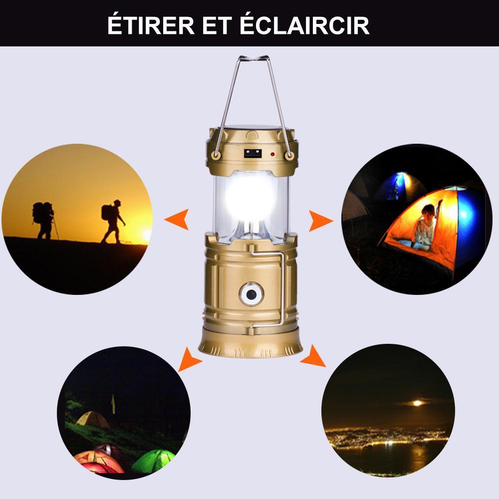 - Daugiafunkcinė kempingo lempa puikiai apšviečia aplinką tamsoje, net keliais apšvietimo režimais! Žibintas gali būti kaip prožektorius. Kompaktiškas dydis leidžia patogiai apimti žibintą ranka ir šviesti į kelią.