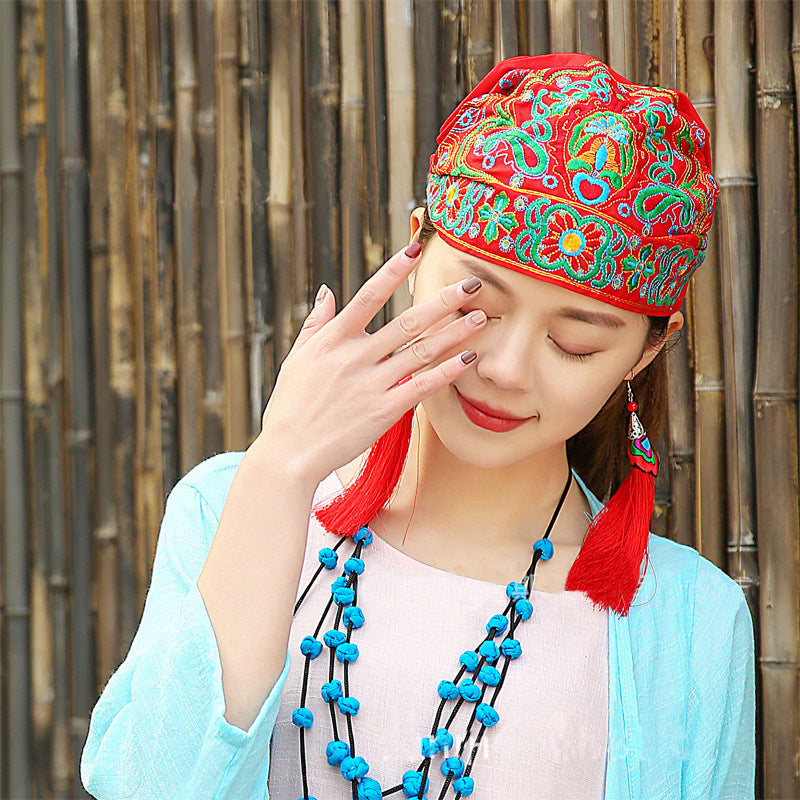 Ši kepuraitė, dekoruota akį traukiančiais etniniais raštais, yra ne tik išskirtinio dizaino, bet ir nepaprastai patogi. Jos unikalus raštų derinys suteikia jai išskirtinumo, o dėl universalaus dizaino ji puikiai tinka prie įvairių šukuosenų - nuo elegantiškų kasų iki laisvai krentančių plaukų ar net trumpų kirpčiukų.