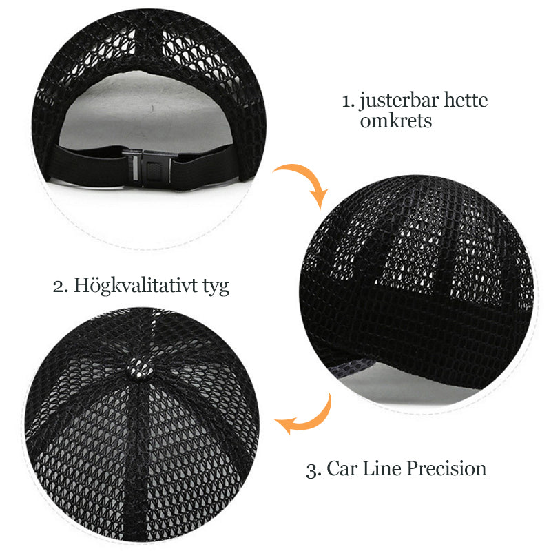 Reguliuojama + greitai džiūstanti: reguliuojami lankstūs dirželiai. Kepurė gerai priglunda prie jūsų galvos formos. Ji turi greitai džiūstančią erdvią konstrukciją.