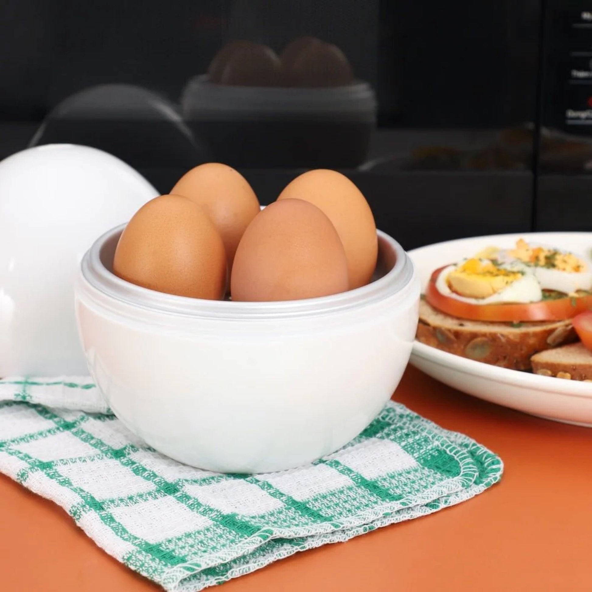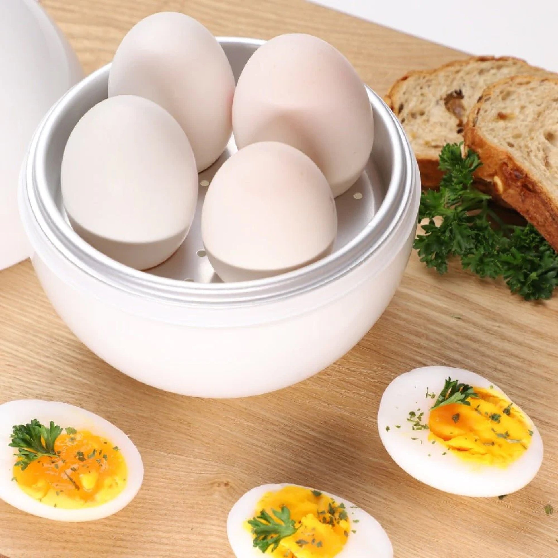 Tiesiog įdėkite kiaušinius į specialiai tam skirtą indą, įdėkite į mikrobangų krosnelę ir leiskite šiai viryklei pademonstruoti savo magiją.