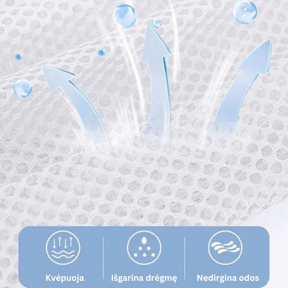 Nešyklė pagaminta iš 3D kvėpuojančio tinklelio. todėl yra patogi. lengva. vėsinanti ir puikiai išgarinanti susikaupusią drėgmę ir tinka visiems sezonams.