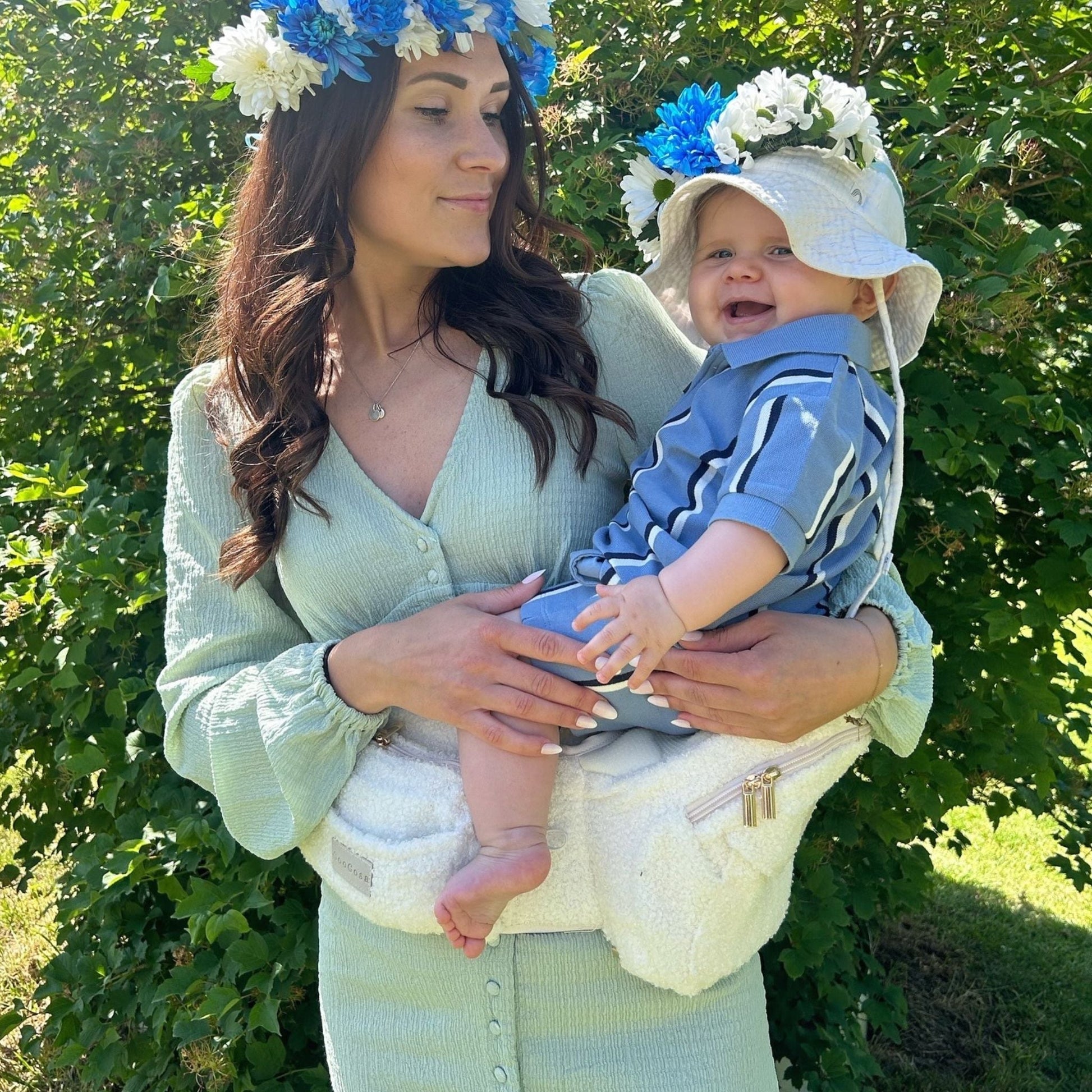 - Sėdynė idealiai tinka tėvams, kurių vaikai dažnai nori būti paimami ant rankų. Sėdynė turi tvirtą diržą, kuris yra užsegamas per liemenį. Diržas puikiai išlaiko vaiko svorį ir neslysta nuo liemens. Tai itin patogus diržas, kuris akimirksniu palengvina vaiko nešiojimą, nevargina rankų bei nugaros.