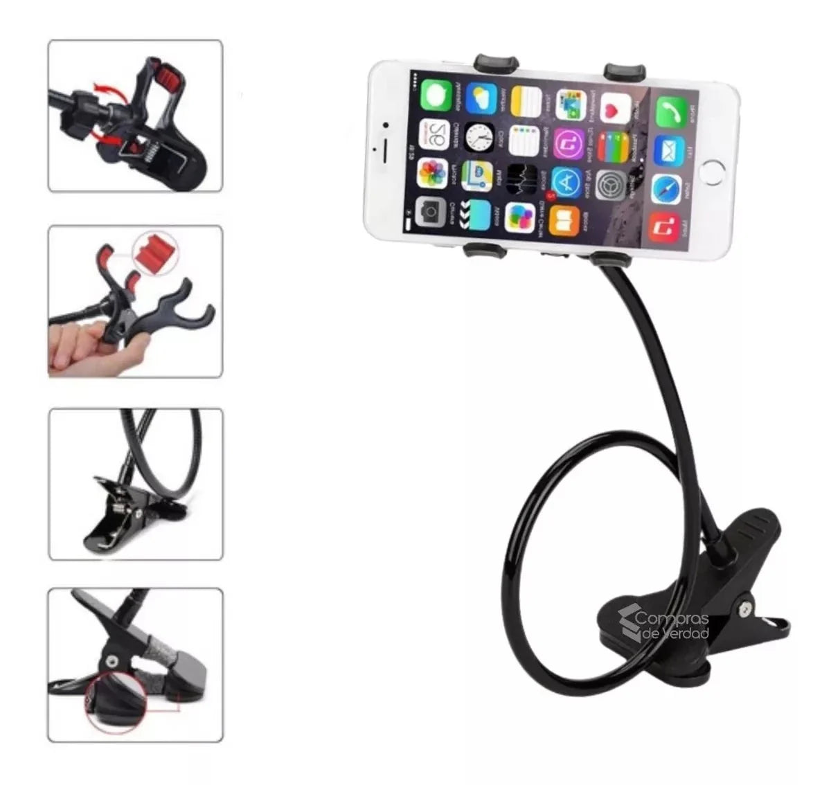 Reguliuojamo spaustuko plotis gali būti iki 125 mm, todėl jis tinka daugumai telefonų modelių.