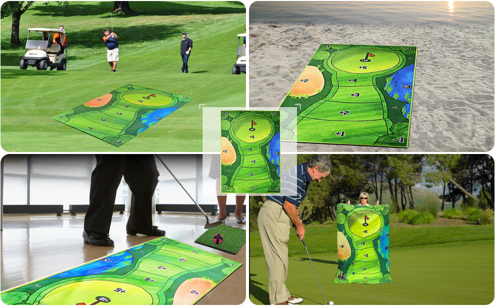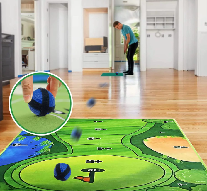 Kompaktiškas ir lengvai nešiojamas rinkinys leidžia žaisti golfą bet kur, tiek lauke, tiek viduje.