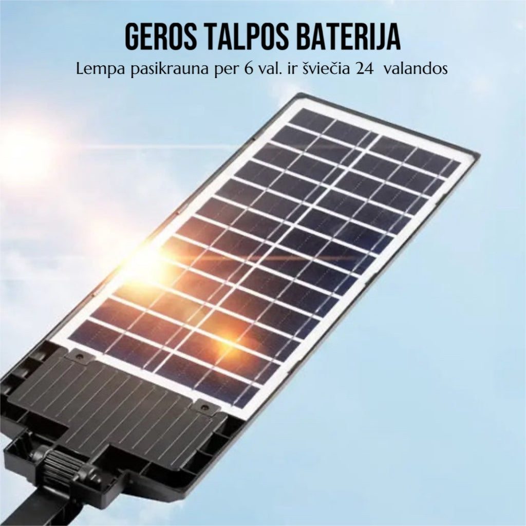 Aukšto efektyvumo polikristaliniai saulės moduliai - Lauko gatvės šviesa naudoja 6V/12W polikristalinius silicio fotovoltinius modulius. o fotoelektrinis konversijos rodiklis padidėja 25%. Ši LED saulės gatvės šviesa įmontuota su 20000mAh didelės talpos ličio baterija. kuri gali būti visiškai įkrauta per vos 6-8 valandas ir suteikia 15-18 valandų nuolatinį darbo laiką.