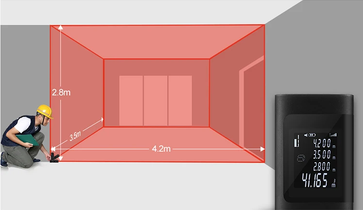 ✔️ Atlikite įvairius matavimus - įrenginys turi 6 matavimo funkcijas, įskaitant plotą, tūrį ir trikampio metodą.