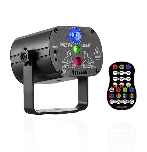 Mūsų scenos prožektorius, turintis raudoną ir žalią lazerius, idealiai tinka vestuvėms, gimtadieniams, vakarėliams, diskotekoms, šokiams ir kt. Naudodami šviesos diodų ir lazerio režimą, galite sukurti begalę infraraudonųjų spindulių raštų, tinkančių bet kokiai progai.