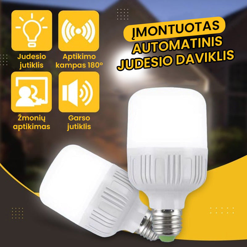 - LED lemputė turi išmanų garso jutiklį. Aptikus didesnį nei 50 decibelų garsą, lemputė automatiškai įsijungia.
