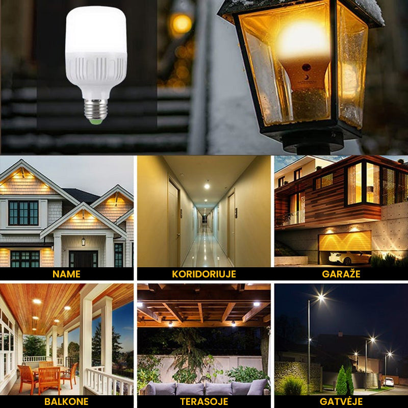 - LED lemputė puikiai apšviečia sodo, gyvenamųjų namų, daugiabučių kiemus, įvažiavimus, laiptines, terasas. Įmontuotas automatinis judesio daviklis, kurio dėka lemputė įsijungia aptikus judesį. Aptikimo kampas 180°.