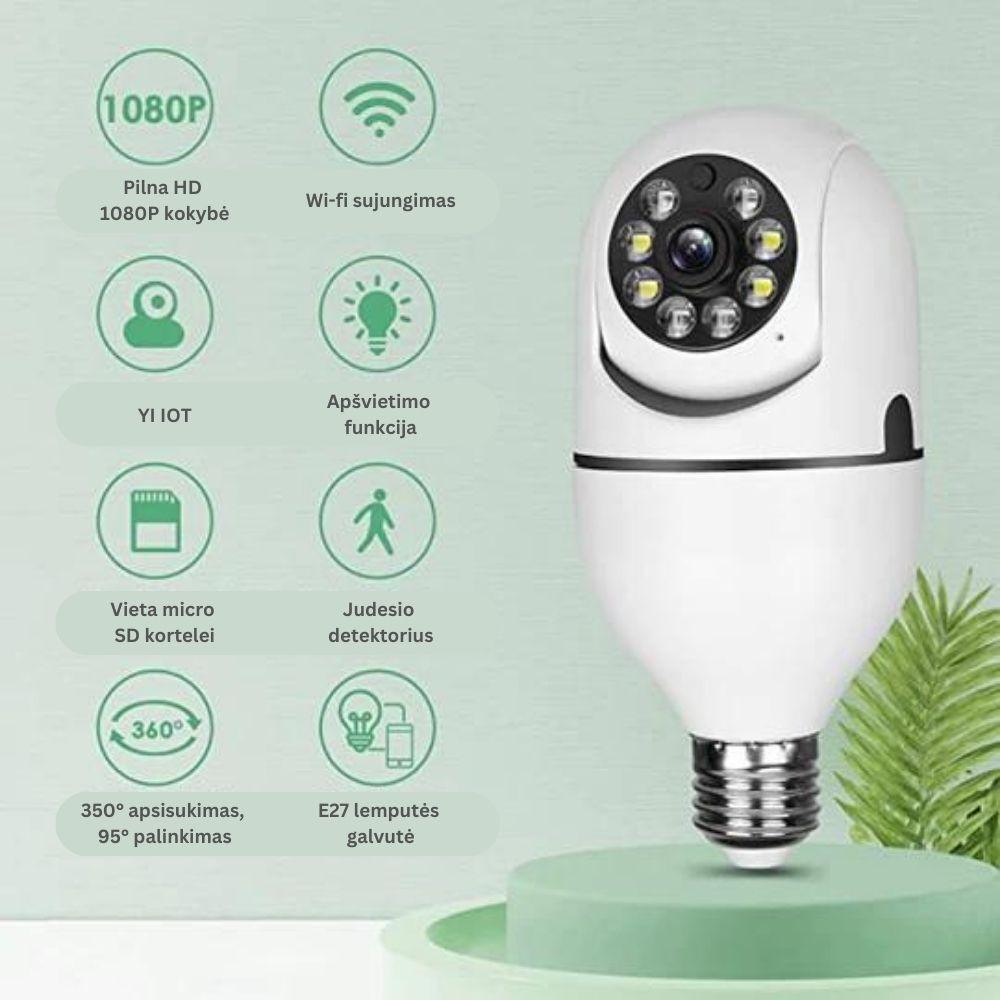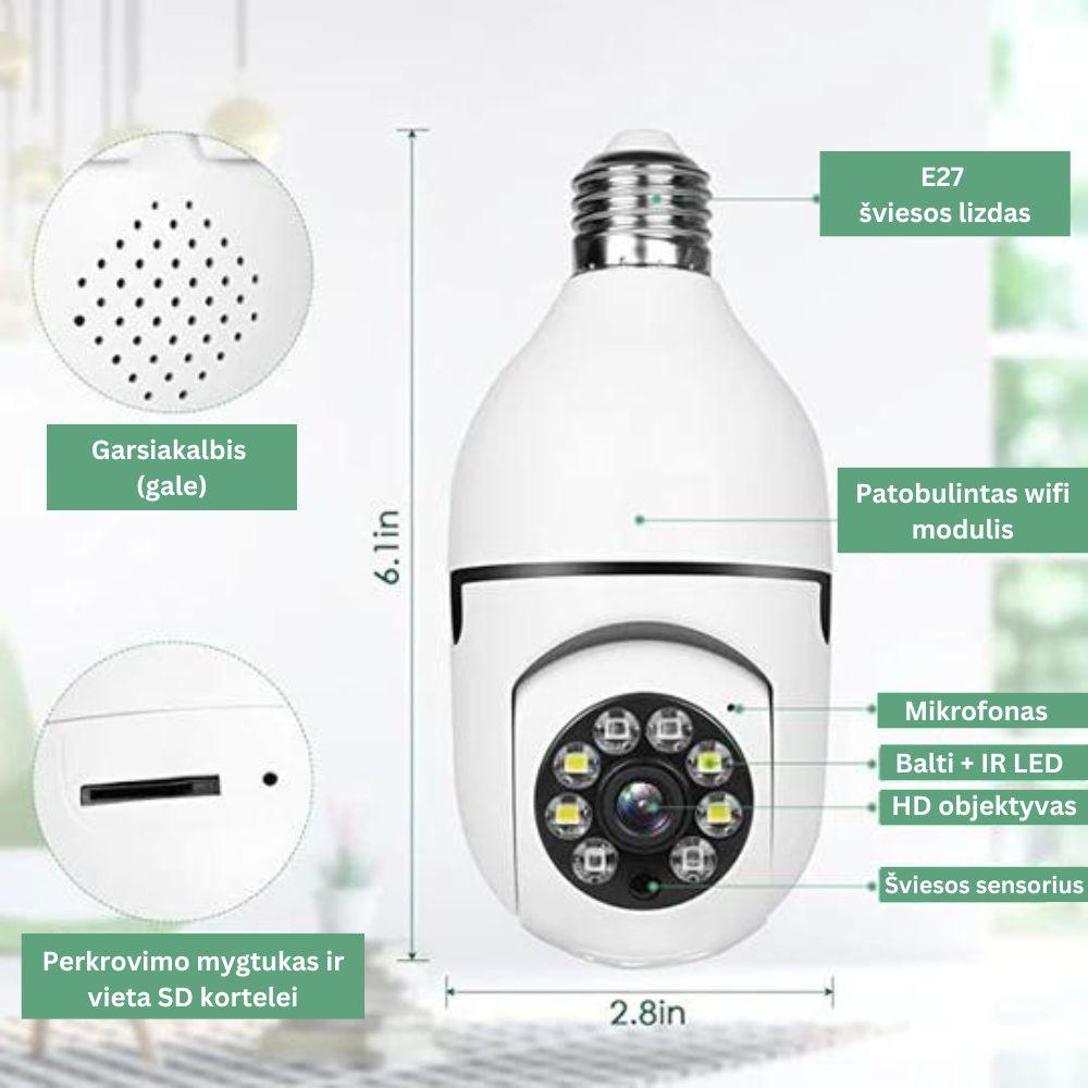 Lemputė su 360 laipsnių stebėjimo kamera