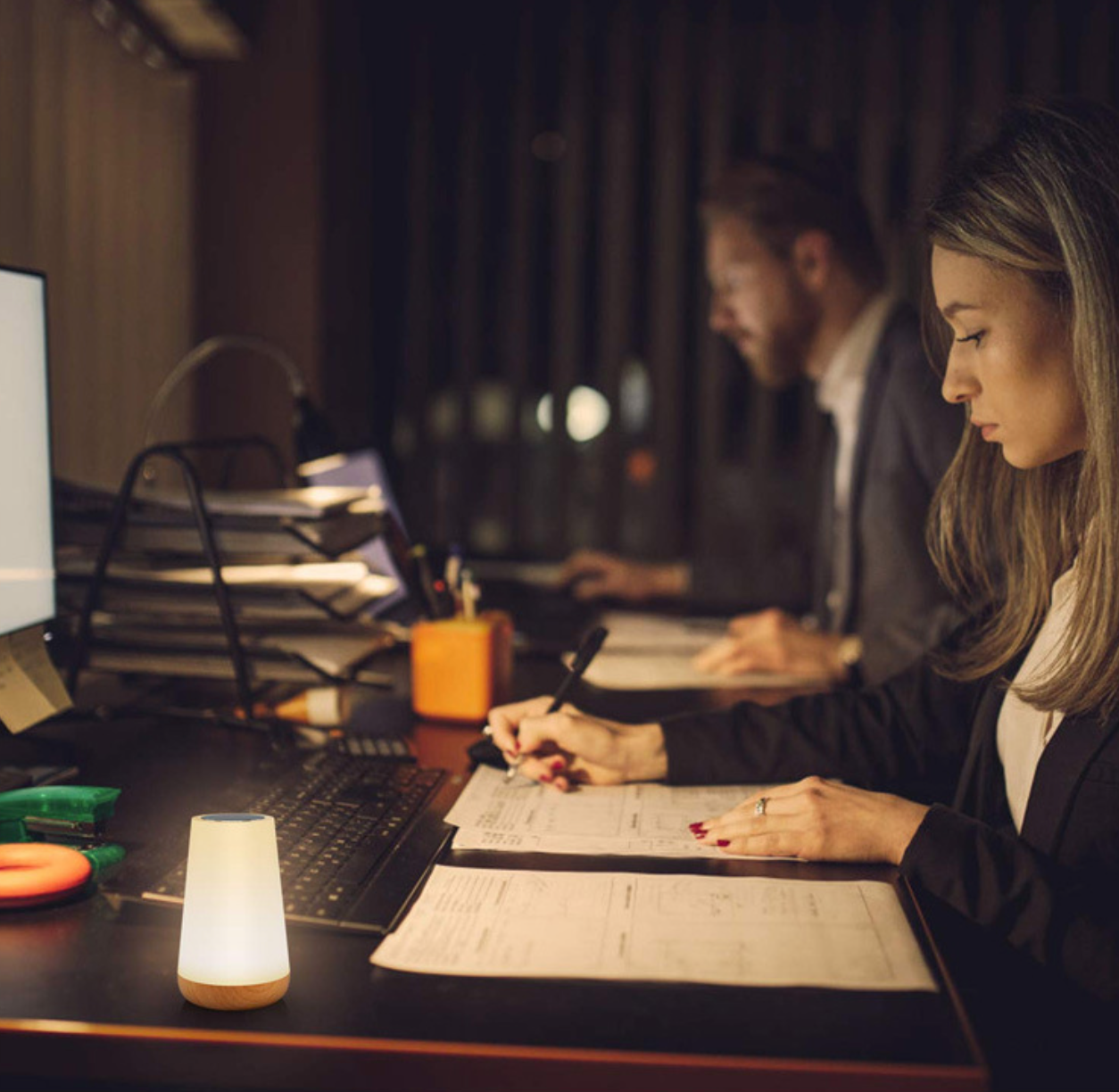Šviesą galima reguliuoti palietus lempos paviršių arba naudojant nuotolinio valdymo pultą, taip lengvai įjungiant ir išjungiant šviestuvą, keičiant apšvietimo režimus ar nustatant automatinį išjungimą po 1/2/4/6 valandų.
