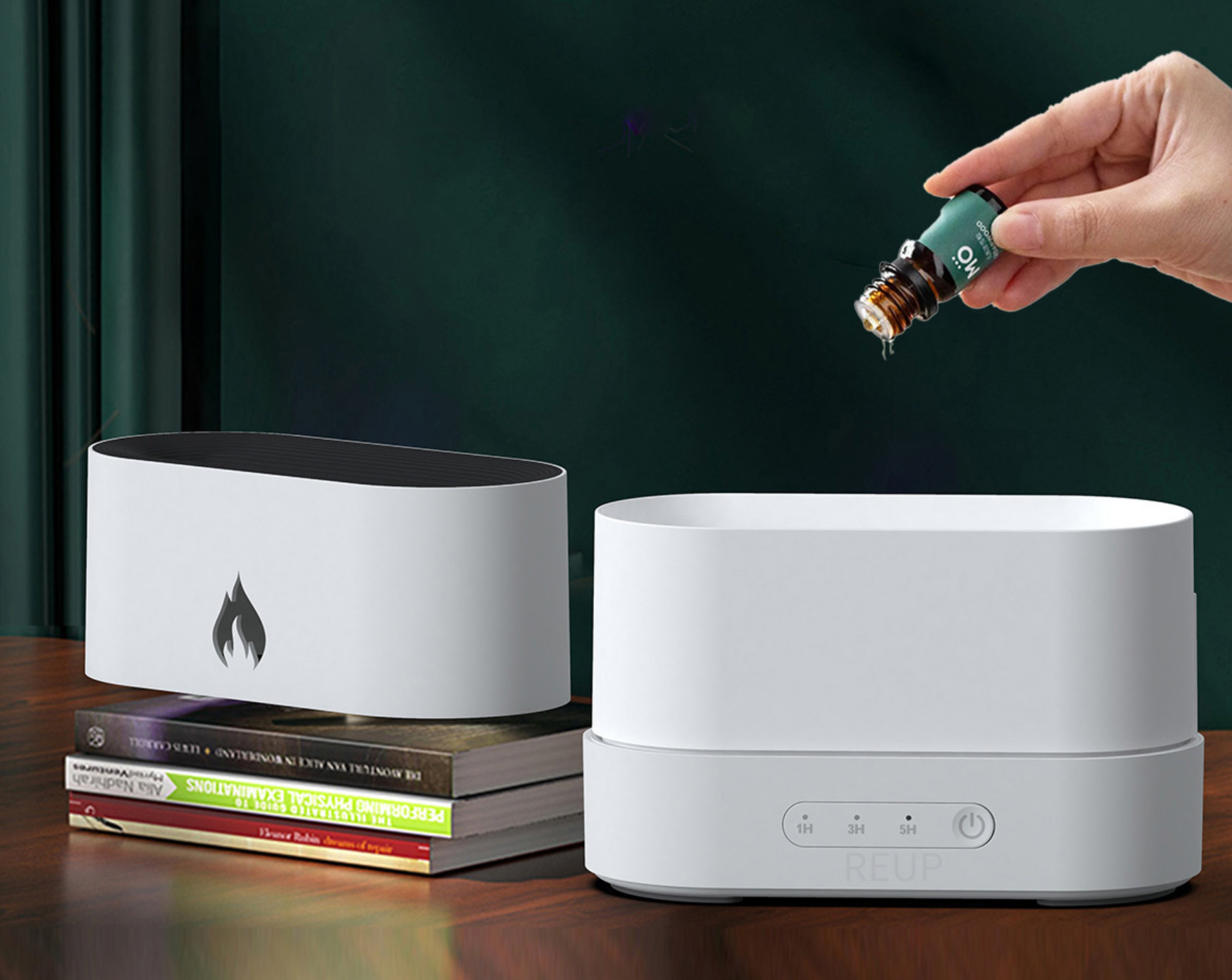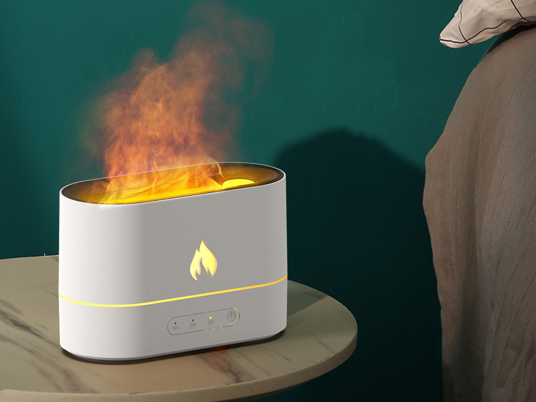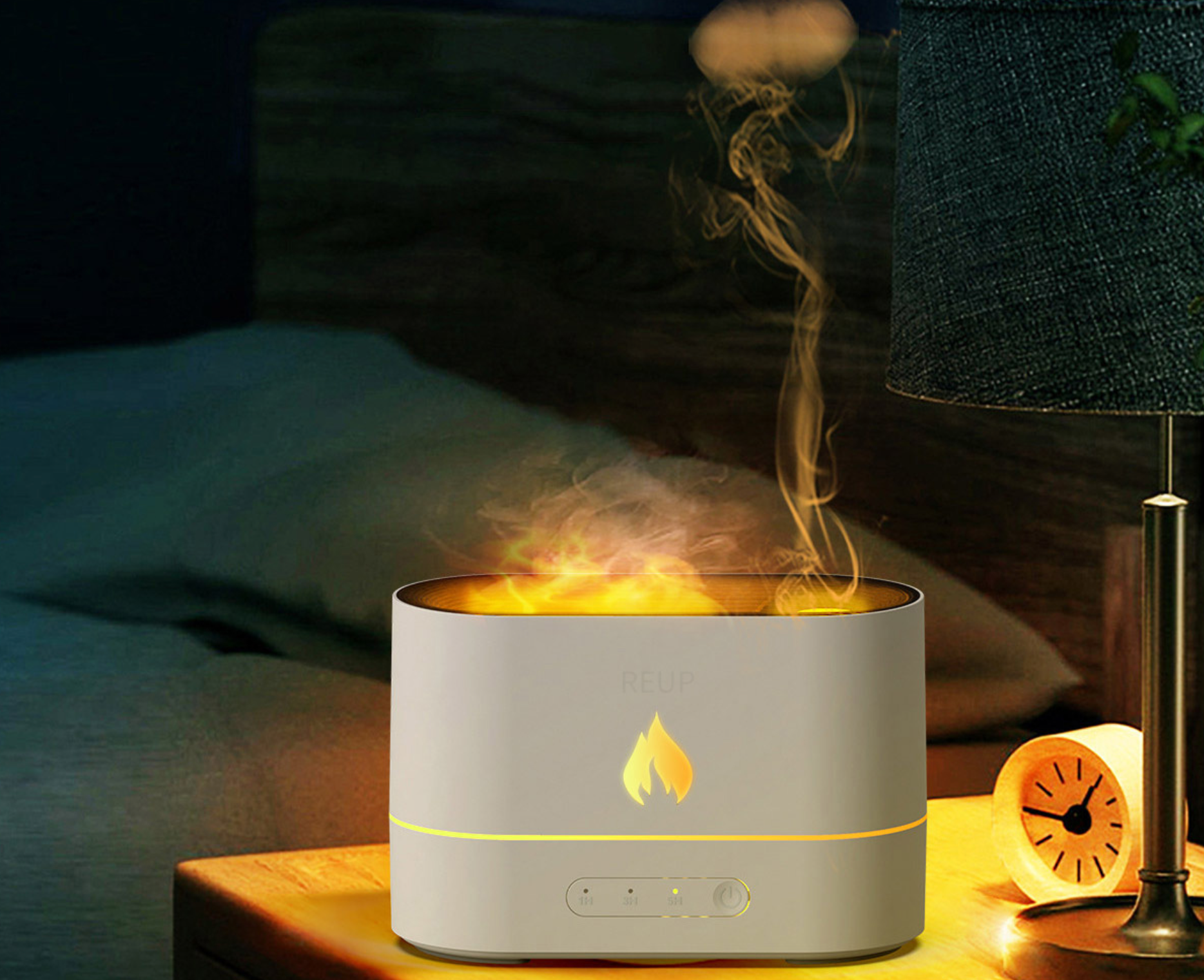 Eterinių aliejų difuzorius skirtas miego kokybei gerinti, nes sukuria ramią ir atpalaiduojančią aplinką. Be to, raminanti liepsnos švieselė suteikia jaukumo.