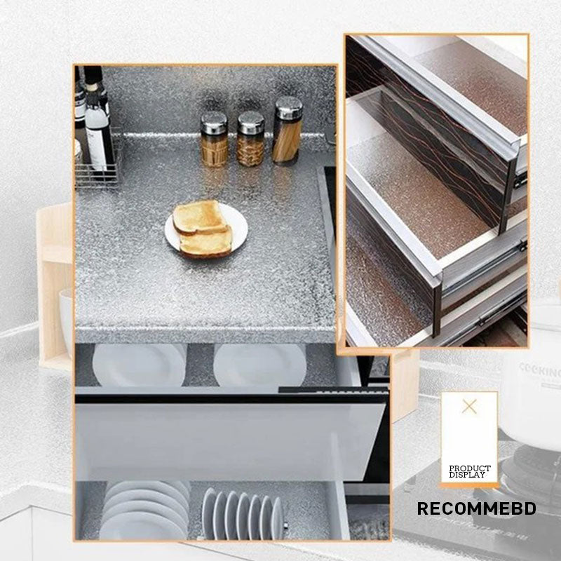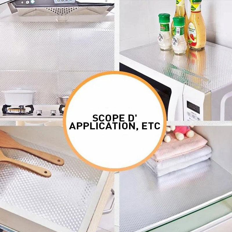 - Plėvelė apsaugo virtuvinį stalviršį, spinteles, sienas nuo riebalų bei kitų nešvarumų. Plėvelė yra karpoma, todėl pritaikysite įvairių išmatavimų stalviršiams, stalčiams bei sienoms. Gali būti klijuojama ant įvairių paviršių. Plėvelė yra atspari drėgmei bei vandeniui.