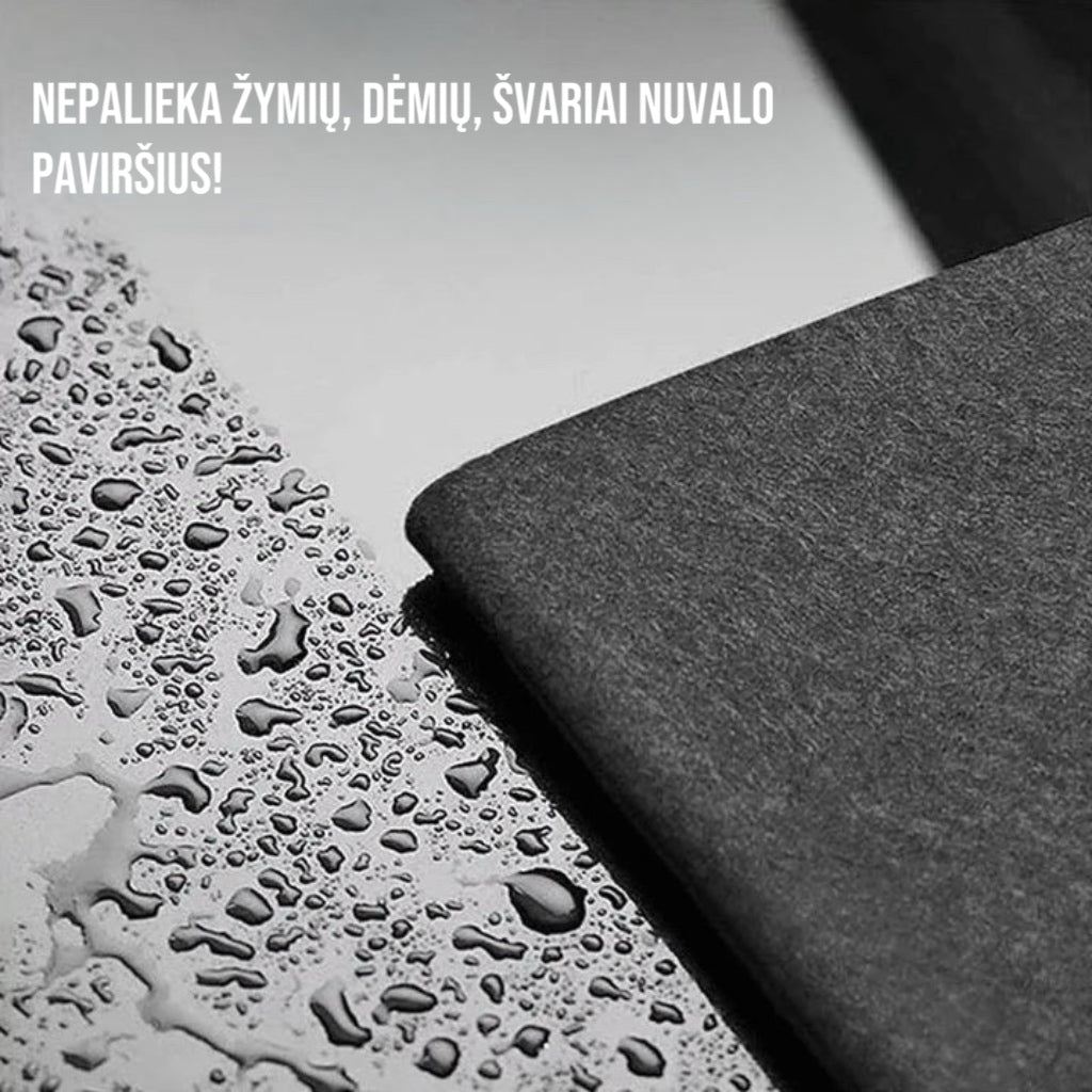Pašalina dulkes. purvą ir aliejų nuo bet kokio kieto paviršiaus ir suteikia jam blizgesį be dėmių vienu prabraukimu nenaudojant cheminių medžiagų