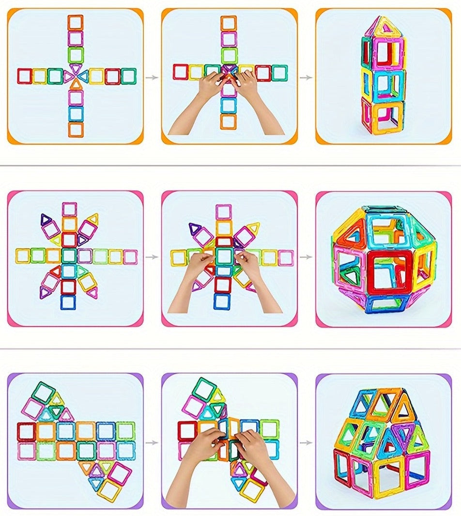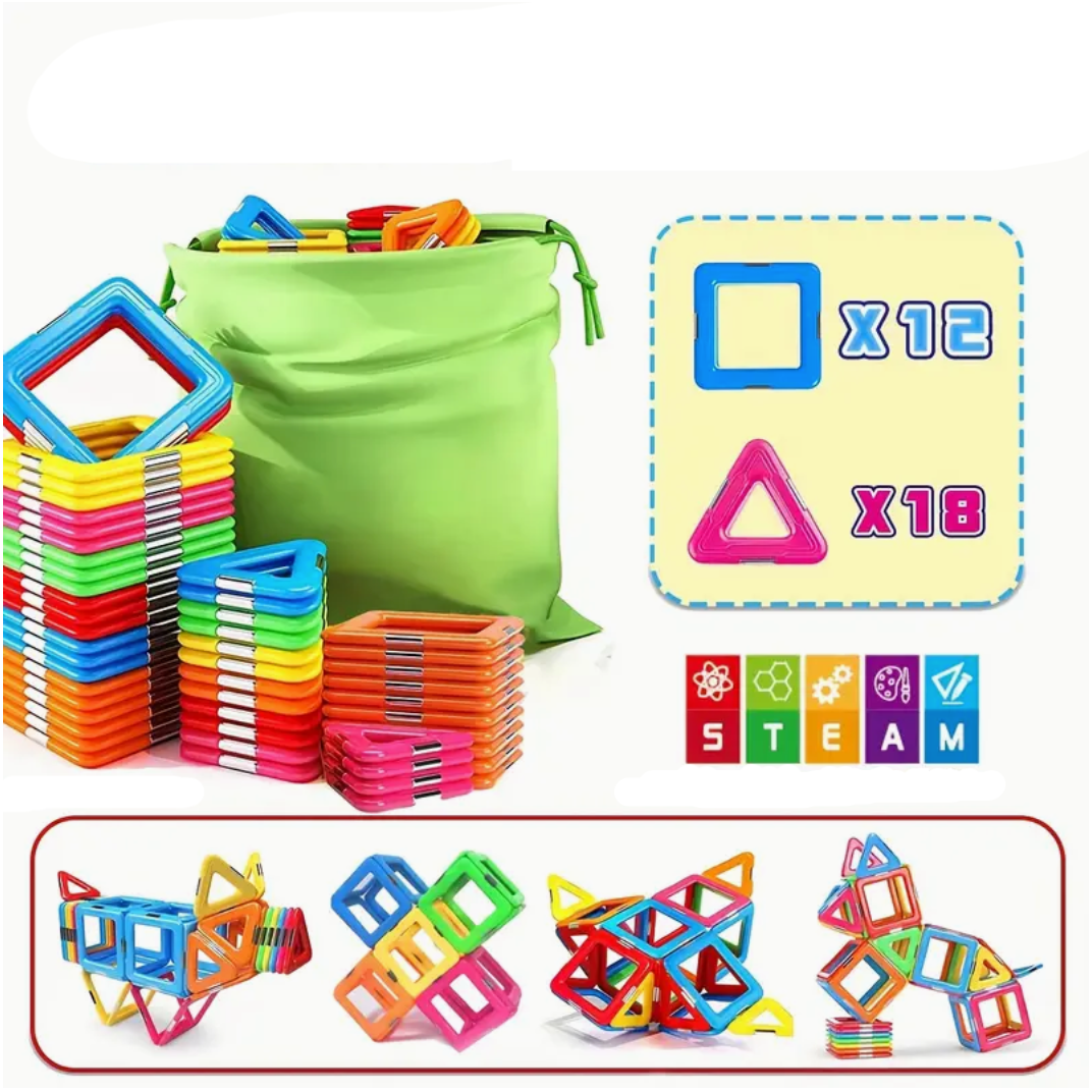 Mūsų magnetiniai blokai – tai ne tik smagus, bet ir naudingas žaislas, skatinantis vaikų kūrybiškumą ir mokymąsi. Jie pagaminti iš ekologiškos ABS medžiagos ir yra visiškai saugūs vaikams. Šis žaislas yra puikus pasirinkimas norint lavinti vaikų smulkiosios motorikos įgūdžius, erdvinį suvokimą ir kūrybinį mąstymą.