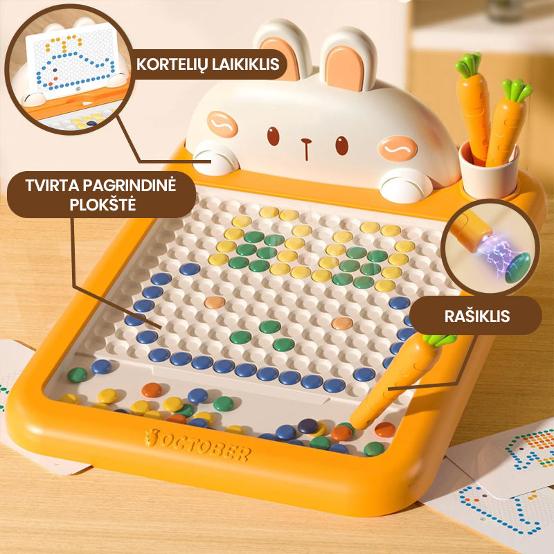 - Magnetinė piešimo lenta, kuri įkvepia vaikus žaidimo forma išmokti rašyti ir piešti. Tai šiuolaikiškas vaikų fantazijos šaltinis! Puikiai lavina vaiko mąstyseną, kūrybiškumą bei akių koordinaciją. Lengvai suprantamas ir edukacinės naudos suteikiantis užsiemimas;