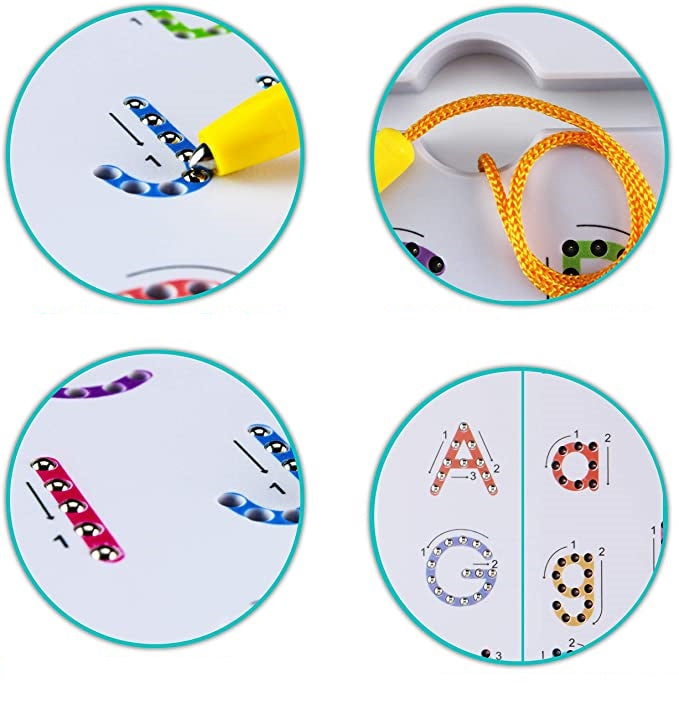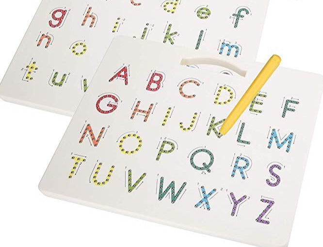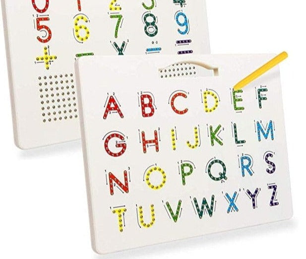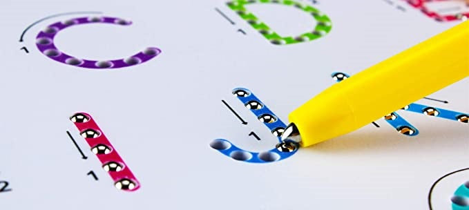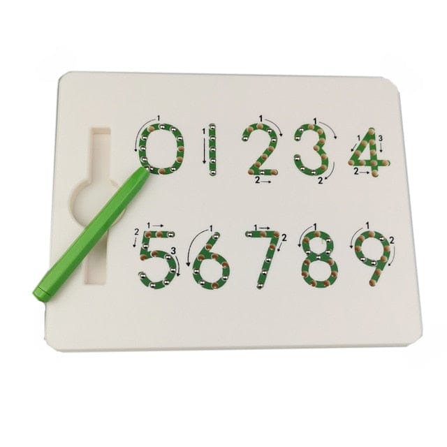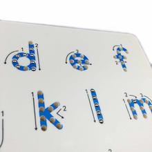 Lentelės turi raides/skaičius su rodyklėmis. Magnetinis rašiklis sukuria vientisas linijas ir užbaigia raides/skaičius.