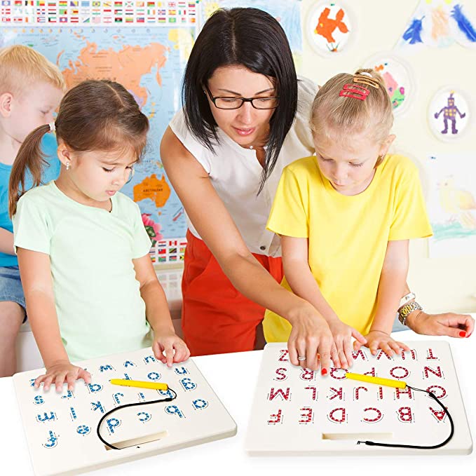 Skatina vaikus dirbti kartu kaip komanda, o lentelės ir magnetinis pieštukas padaro žaidimą interaktyvų.