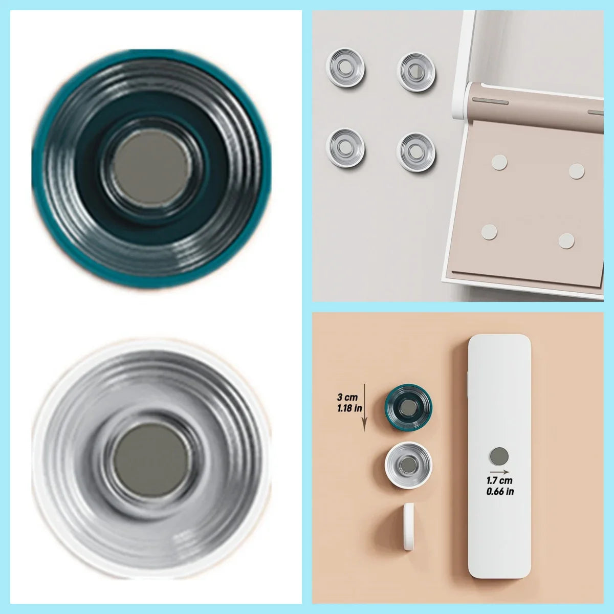 - Magnetiniai laikikliai neleidžia pasimesti televizorių, ventiliatorių, šviestuvų pulteliams. Laikiklių dėka, pulteltį galima lengvai pritvirtinti prie įrenginio sienelės. Priklijuokite vieną magnetuko pusę prie pultelio, kitą prie pačio įrenginio. Pultelis pagaliau turės savo vietą! Naudojant magnetinius laikiklius jūsų namuose esantys kavos staliukai bus tvarkingi ir mažiau apkrauti išmaniųjų įrenginių valdymo priedais.