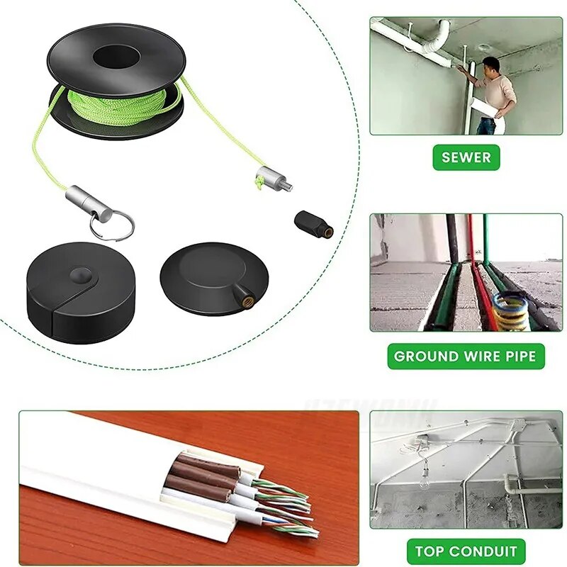 - Itin patogus ir greitas būdas nukloti kabelius per sienas, grindis ar lubas. Stipri magneto trauka neleidžia pasimesti laidams ir tolygiai išveda per visą reikiamą ilgį. Įrankis palengvina laidų pravedimą sunkiai prieinamose vietose.