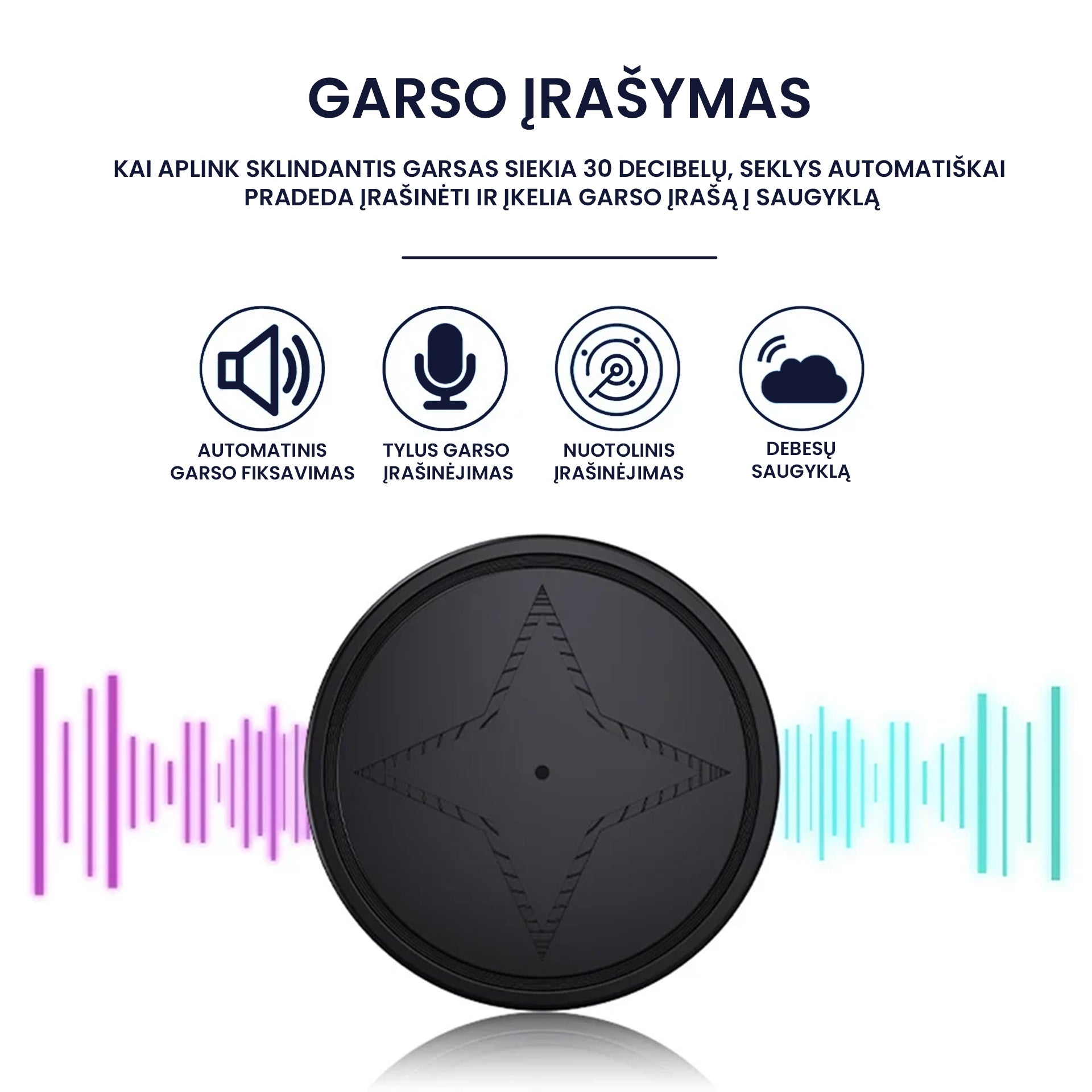 Automatinis garso fiksavimas. Kai aplink sklindantis garsas siekia 30 decibelų, jis automatiškai pradeda įrašinėti ir įkelia garso įrašą į saugyklą;