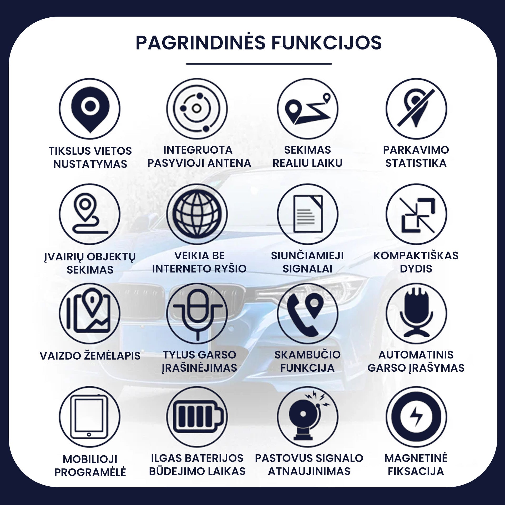Pakuotėje: Magnetinis mini GPS seklys, naudojimosi instrukcija.