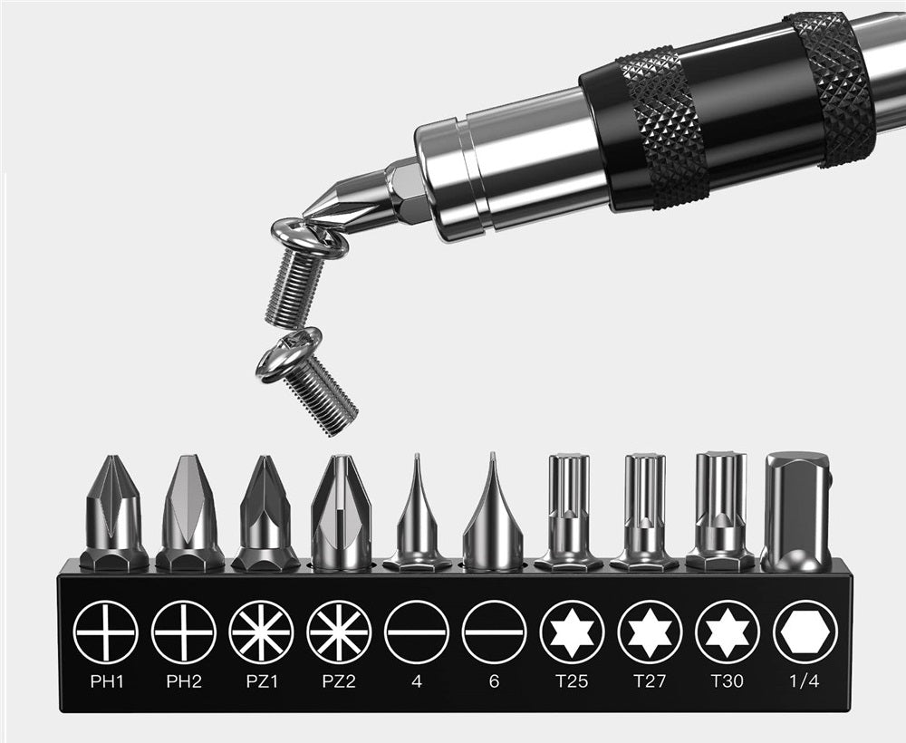 Laikiklyje yra sukama galvutė, skirta varžtams pritvirtinti nepasiekiamose vietose. Gręžiant tiesiai arba kampu, jis gali pasisukti iki 20 laipsnių. Puikiai tinka ankštose erdvėse ir kampuose.