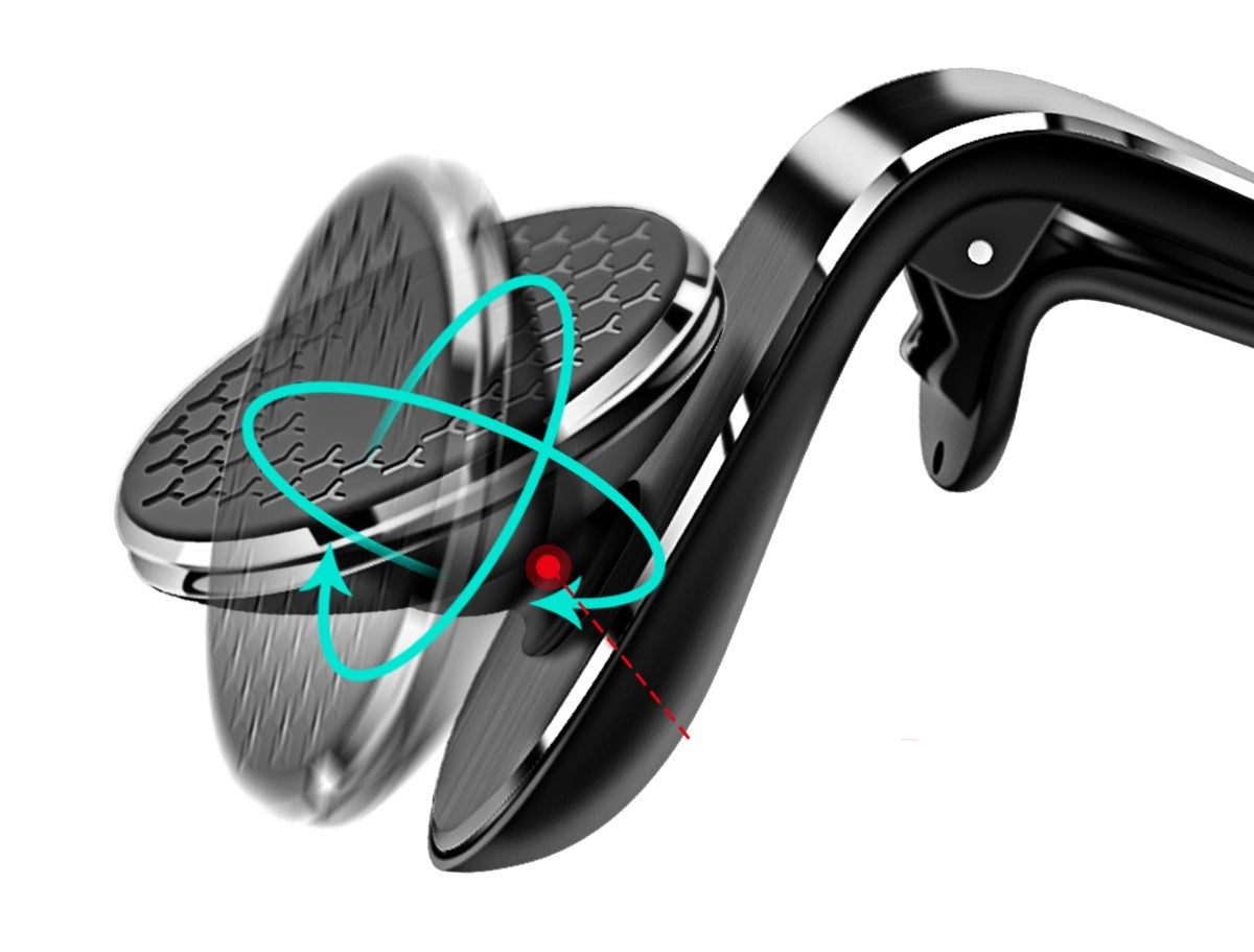 5 neodimio magnetai užtikrina itin stiprų mobiliųjų įrenginių sukibimą, patikimumą ir saugumą kelyje bei išlaiko iki 2,5 kg svorio.
