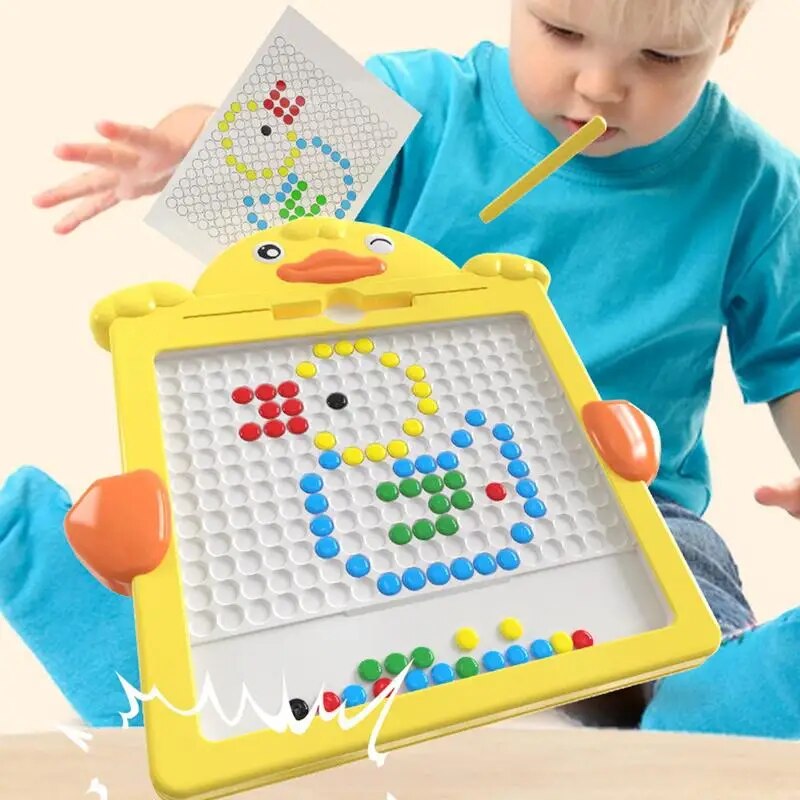 Ši magnetinių karoliukų lenta vaikams suteikia ne tik linksmybes, bet ir lavina kūrybiškumą bei koncentraciją. Spalvingi magnetiniai karoliukai kviečia kurti unikalius raštus ir formas, skatindami vaiko vystymąsi ir mokymąsi žaidimo metu.