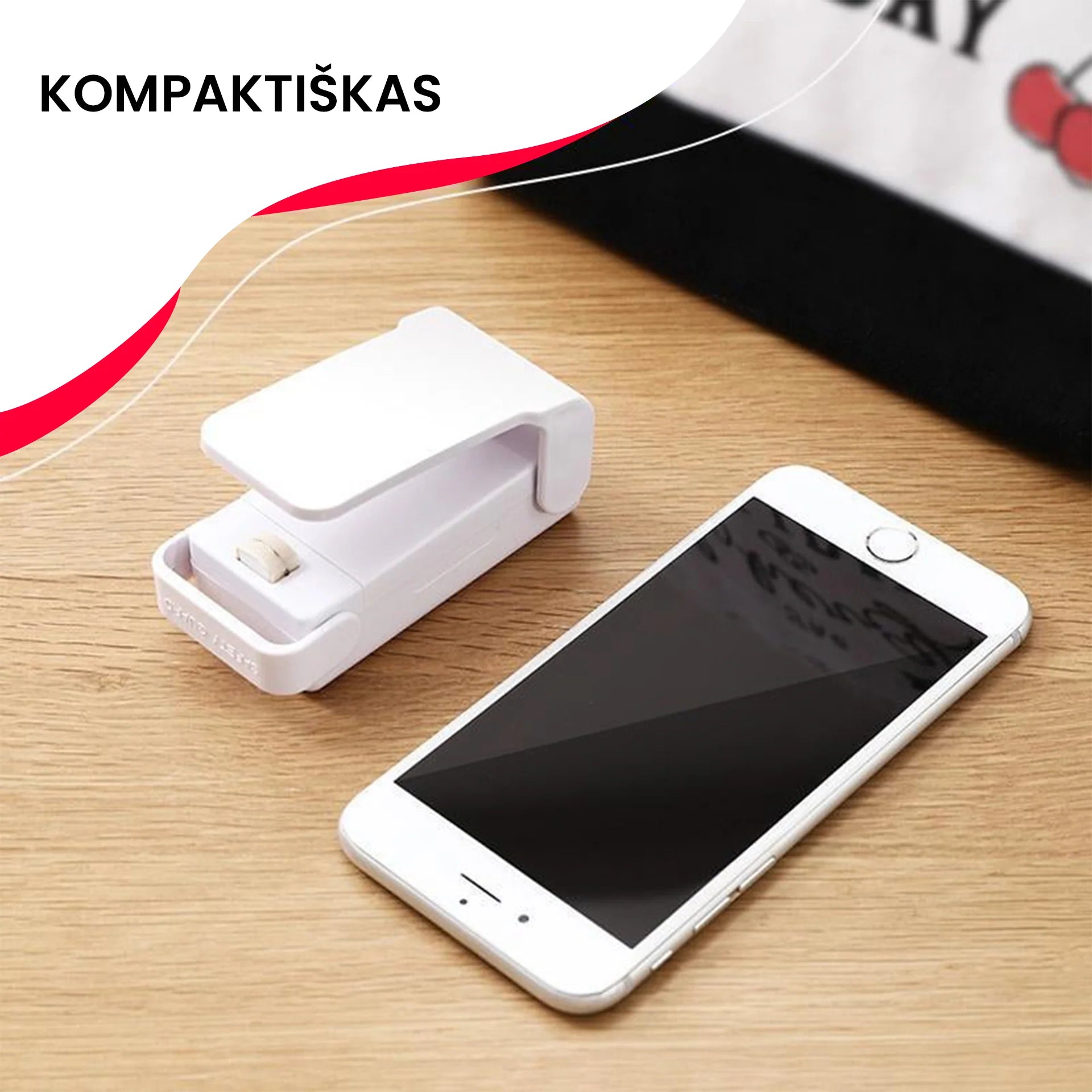 - Maišelių užspaustuvo-sandariklio paskirtis hermetiškai užsandarinti maišeliuose esančius maisto produktus, tokius kaip: traškučiai, riešutai, trapučiai, įvairūs kiti užkandžiai. Užspaudus su šiuo aparatu pakuotę, kurioje dar yra likę maisto produktų, suteiksite jiems ilgesnį šviežumo laikotarpį.
