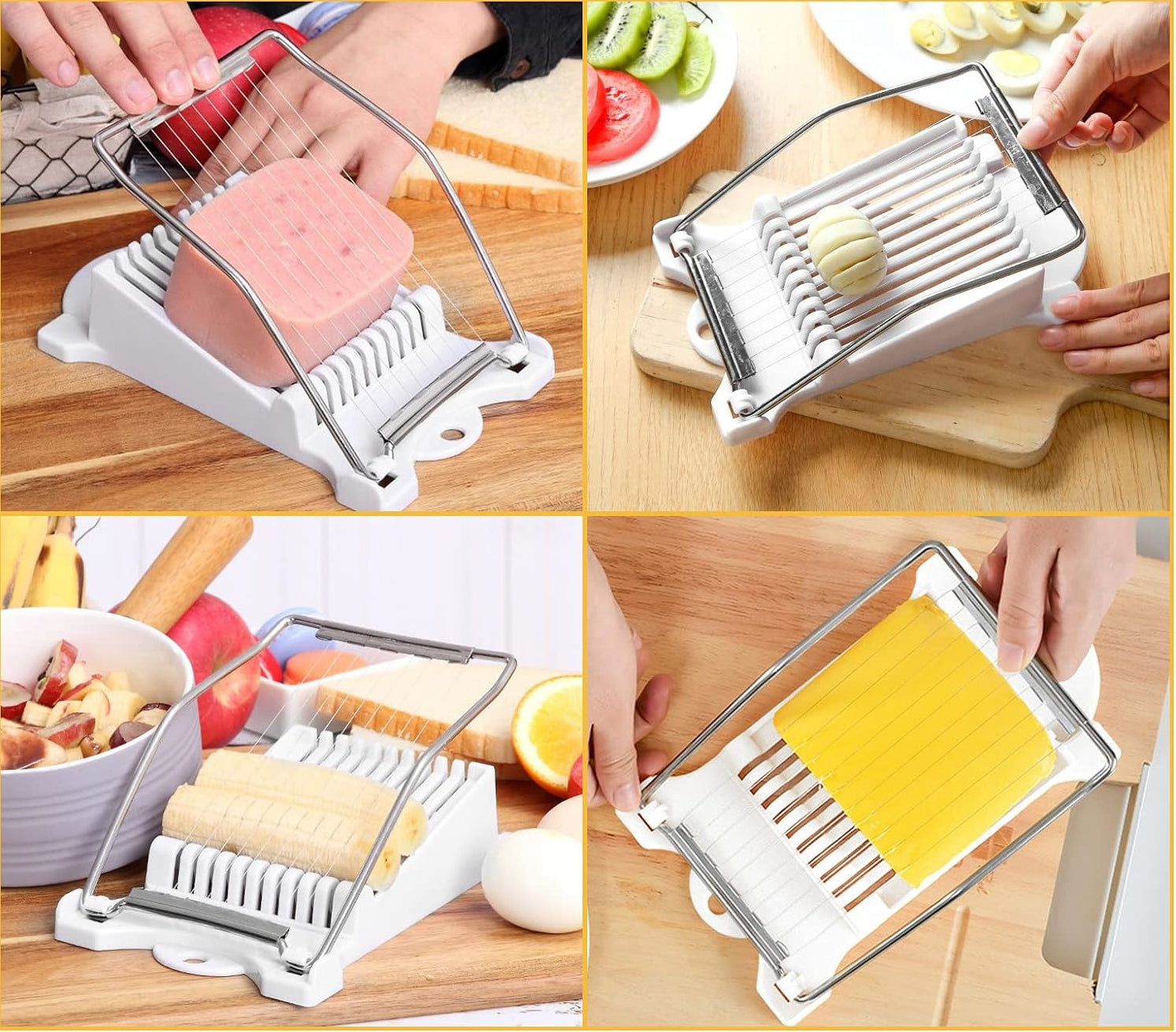 ✅ Virti kiaušiniai: Puikiai tinka kietai virtų kiaušinių pjaustymui.