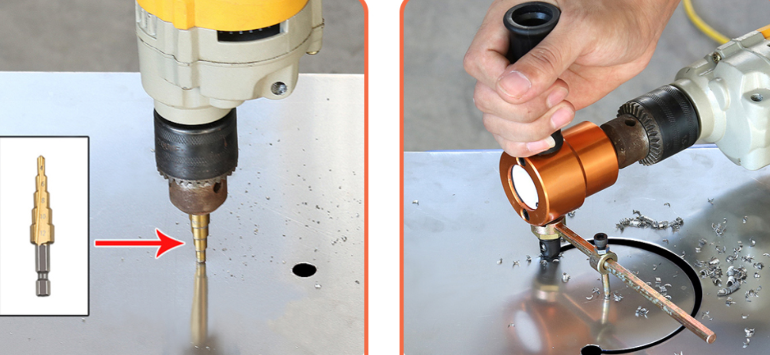 Naudojimosi instrukcija: uždėkite antgalį ant grąžto ir išpjaukite norimą formą.