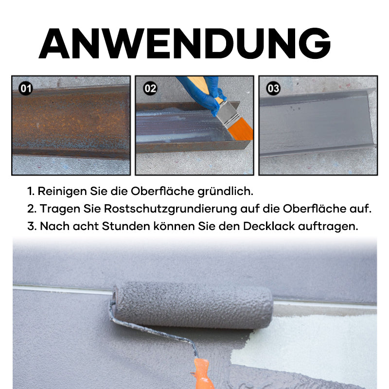 Priemonę itin paprasta ir lengva naudoti! Tiesiog tolygiai padenkite dažais metalinį paviršių ir leiskite išdžiūti. Rekomenduojama padengti teptuku arba voleliu. Nereikia paviršių šlifuoti bei trinti.