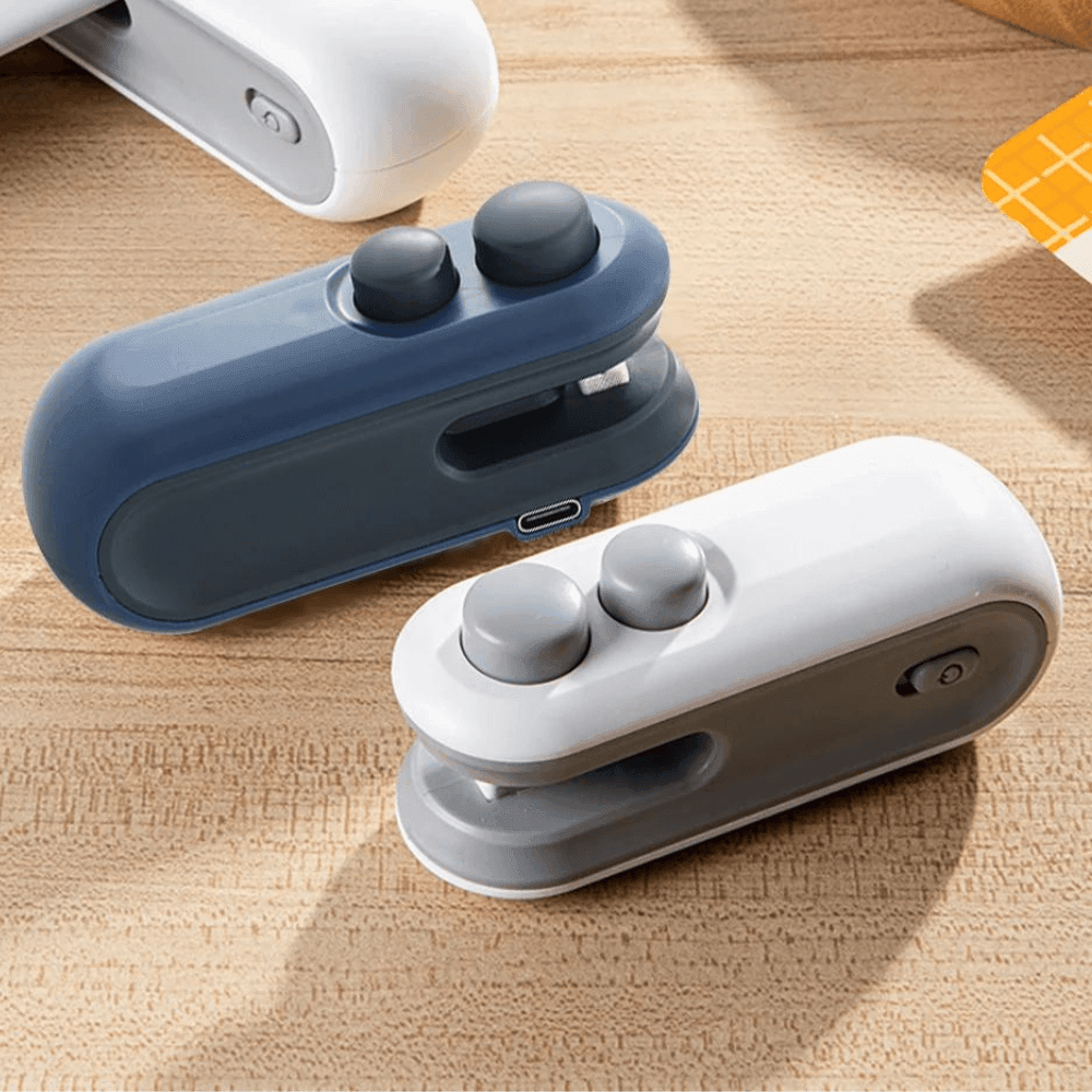 -  Įmontuota 400 mAh baterija. Prietaisas yra greitai įkraunamas, vos per 2,5 valandos. Norėdami užsandarinti esančius produktus maišelyje, leiskite aparatui įkaisti apie 10 sekundžių. Įkaitus aparatui paimkite atidarytą maišelį, įspauskite maišelio galą tarp karštų sandarinimo plokščių ir tvirtai perbraukite tiesia linija. Braukite vieną kartą, kad maišelis būtų garantuotai hermetiškai uždarytas vienu perbraukimu;