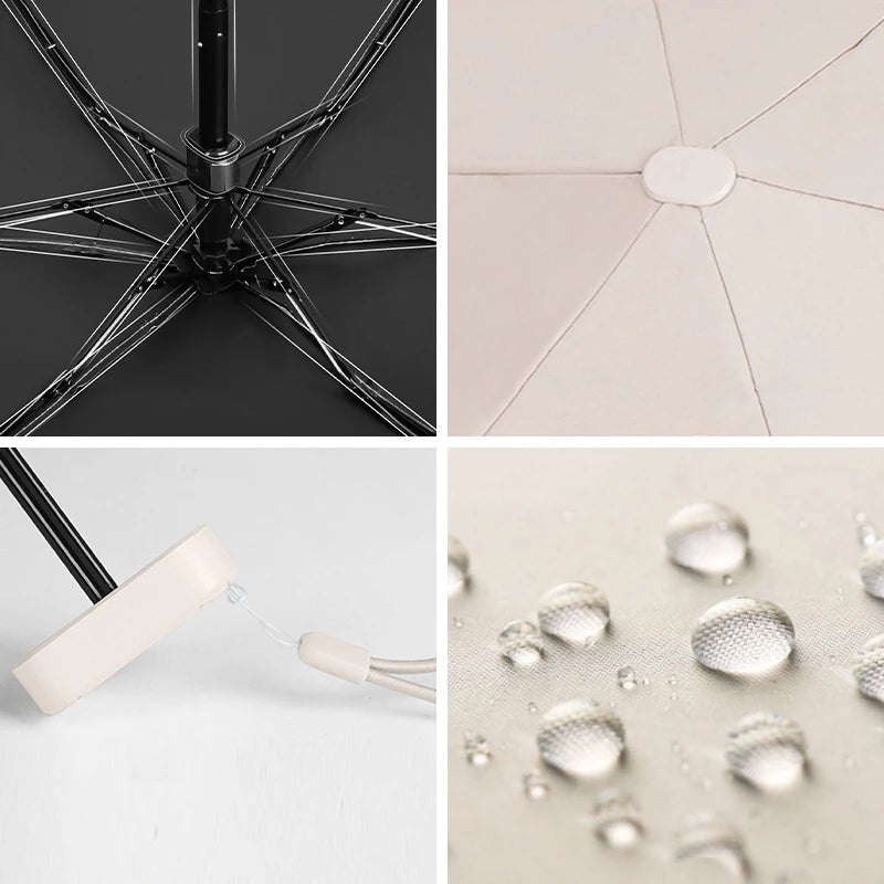 Nors skėtis yra mažas, net esant dideliai lūčiai ir vėjui, jis nesuluš dėka tvirtos 6 strypelių konstrukcijos.