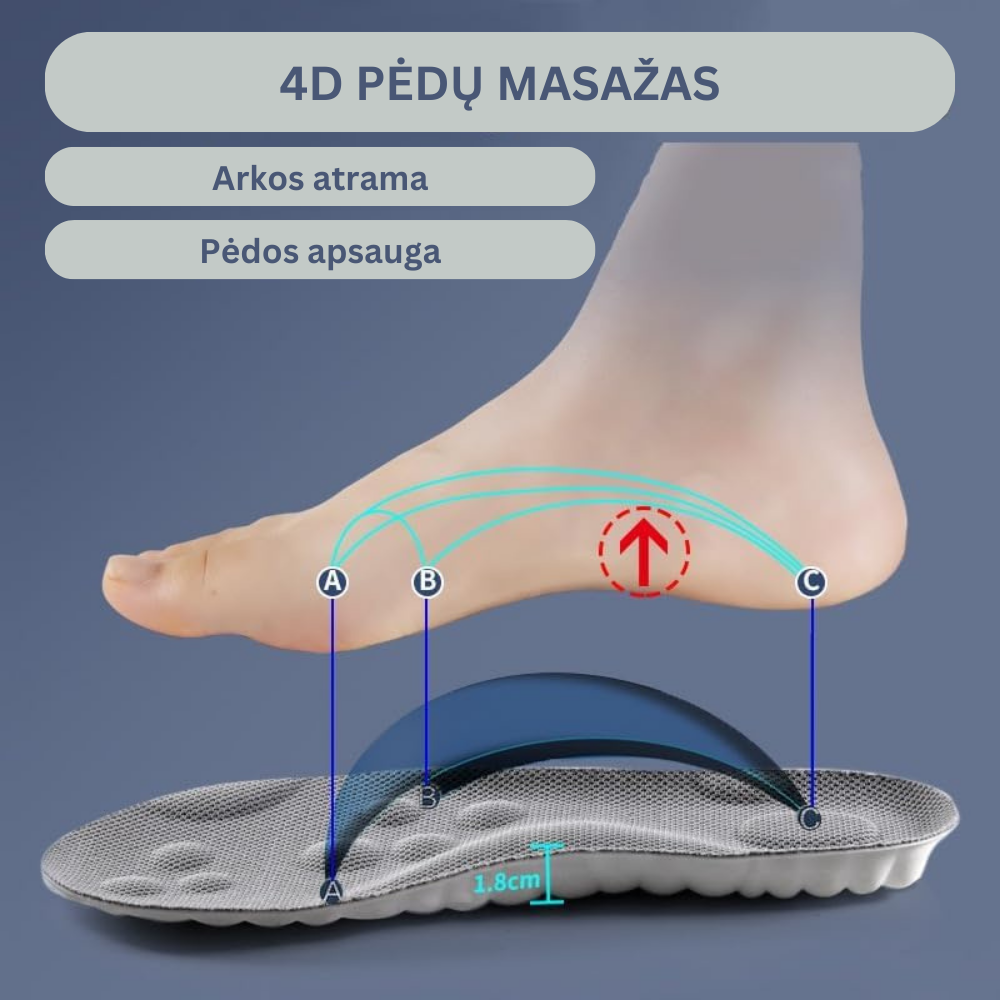✔️ Skausmo mažinimas - ergonominė medžiaga ir dizainas efektyviai paskirsto krūvį, taip sumažinant pėdų skausmą ir diskomfortą.