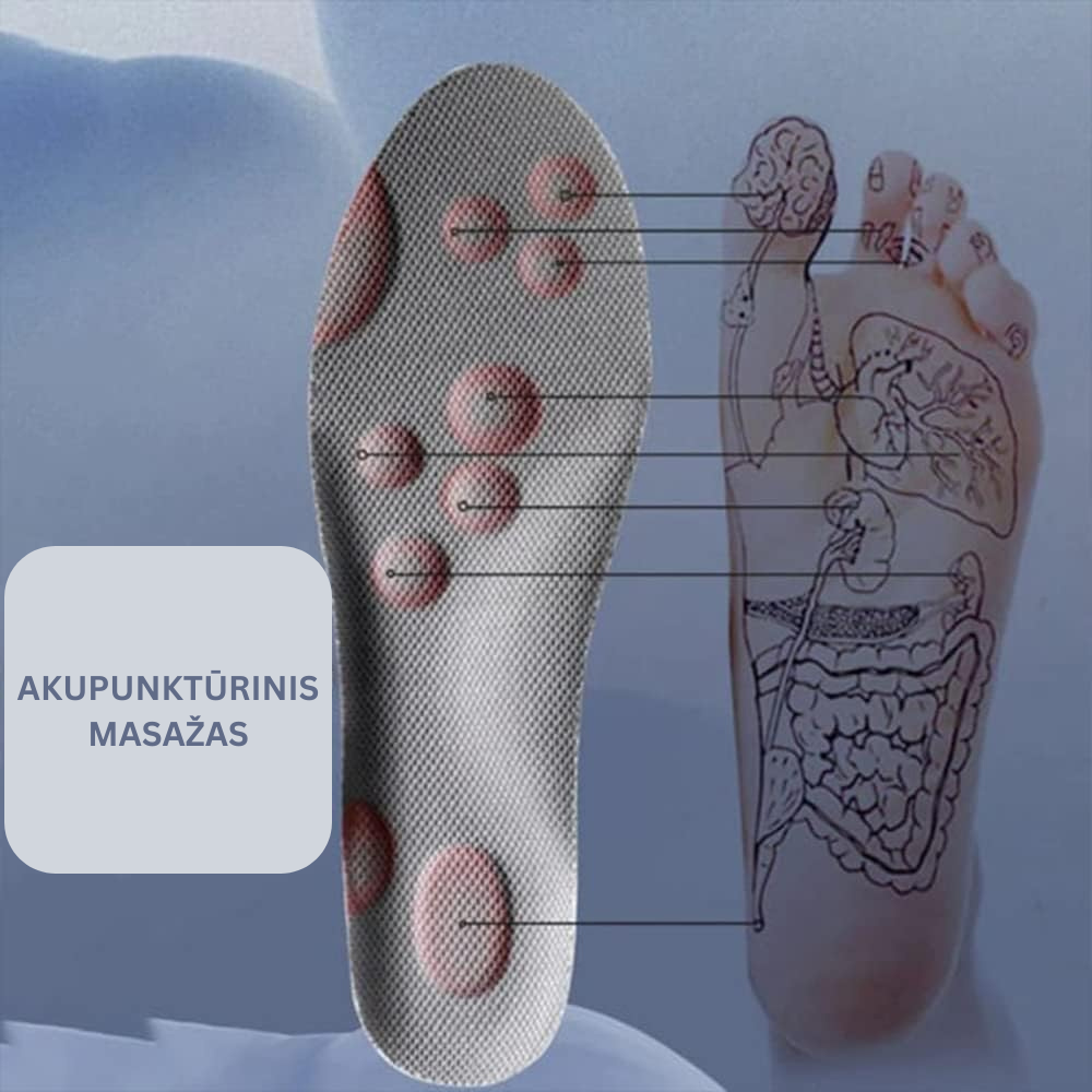 ✅ Kraujotakos Gerinimas: Akupunktūriniai taškai ant vidpadžių skatina geresnę kraujotaką pėdose, taip pat padeda sumažinti kojų patinimą ir nuovargį.