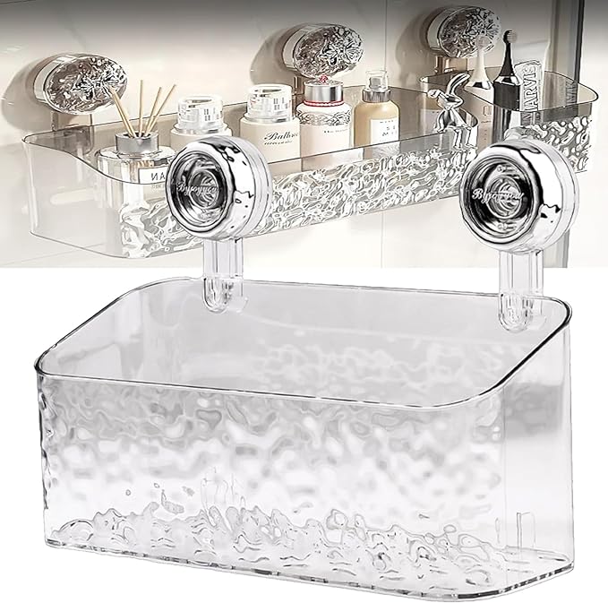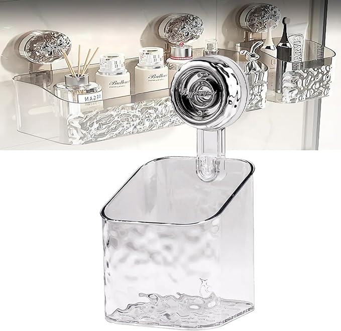 - Kokybiška lentynos tvirtinimo sistema užtikrina stabilų priemonių ir kosmetikos laikymą. Norint pakabinti lentyną ant sienos nereikia jokio papildomo montavimo! Esantys vakuuminiai siurbtukai antroje lentynos pusėje tvirtai prikimba prie lygių paviršių - stiklo, veidrodžio, plastikinių paviršių, sienų ir t.t.